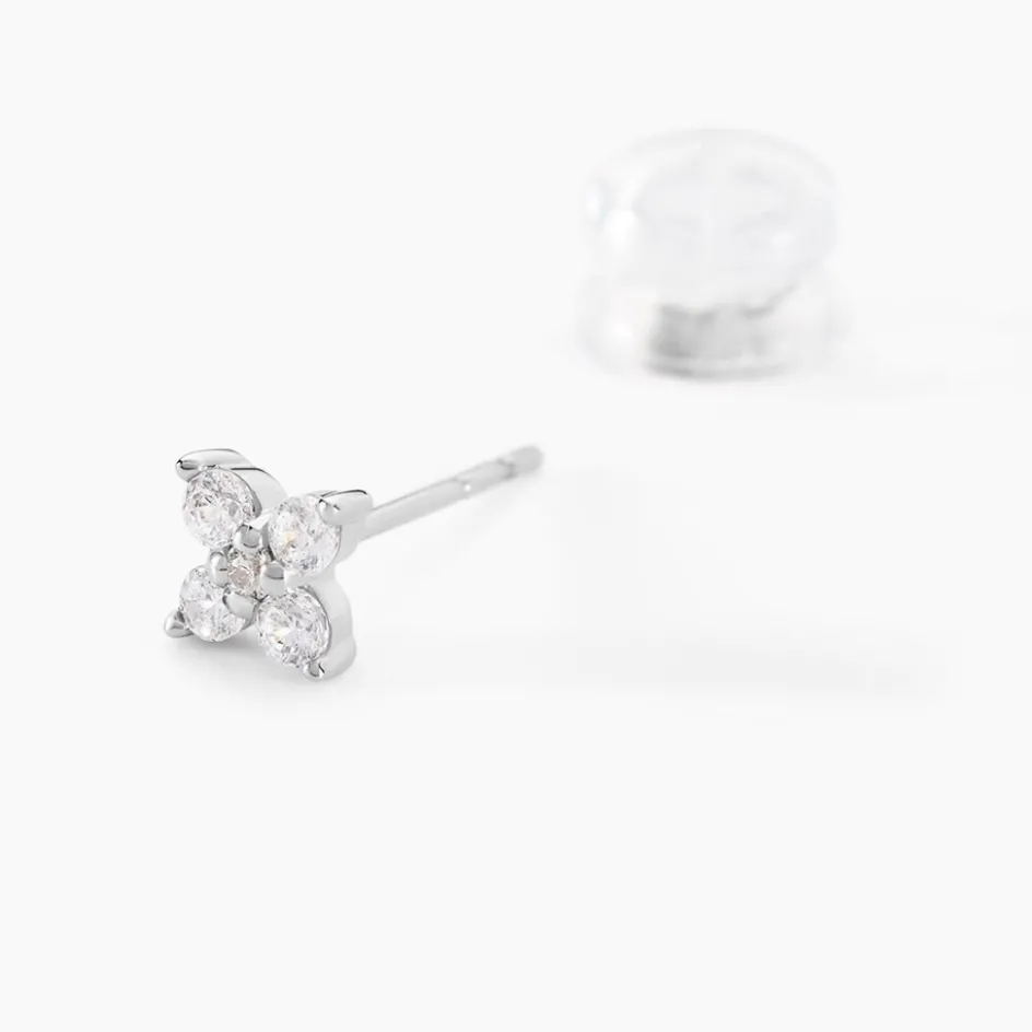Boucles D’oreilles Or Blanc 375/1000 Puces Oxydes De Zirconium Motifs Trèfles