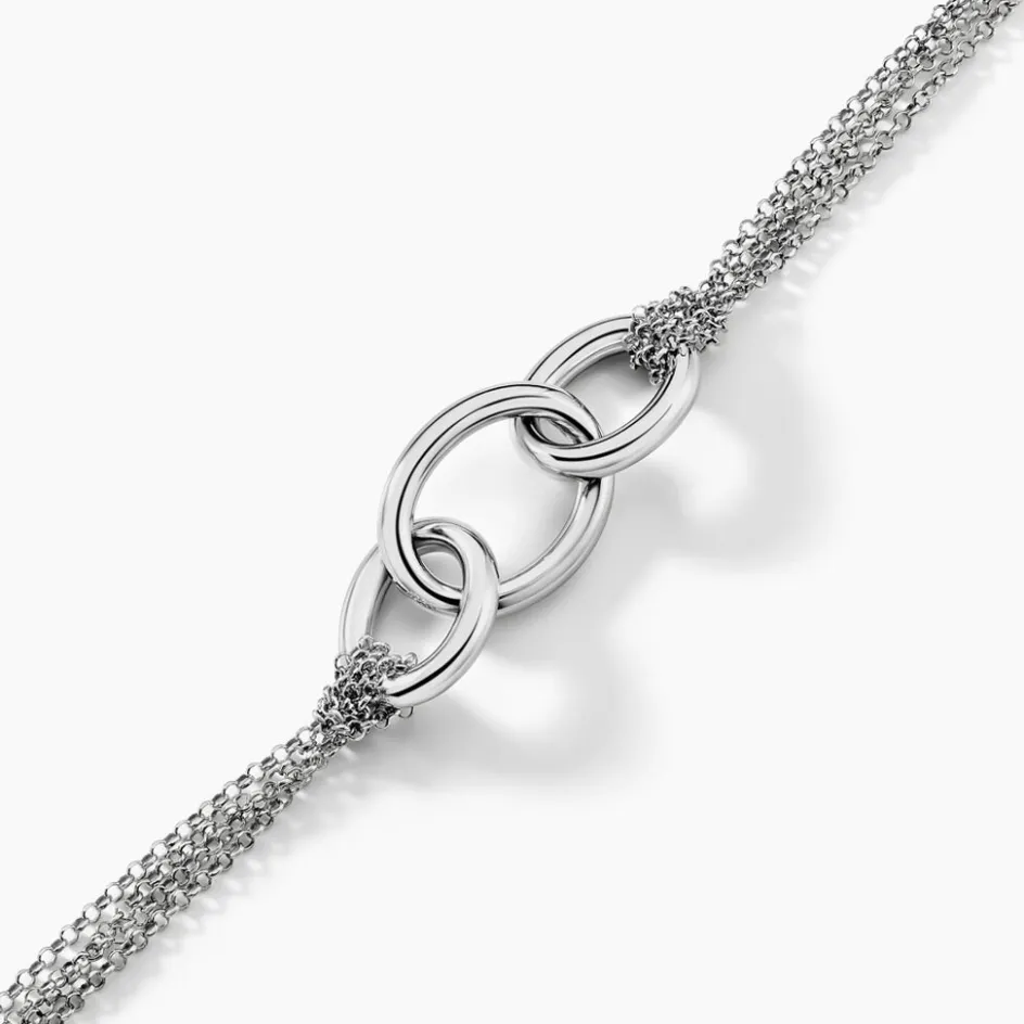 Bracelet Argent Blanc 925/1000 Triple Chaines Motifs Cercles Entrelaces Maille Forcat 18.5cm