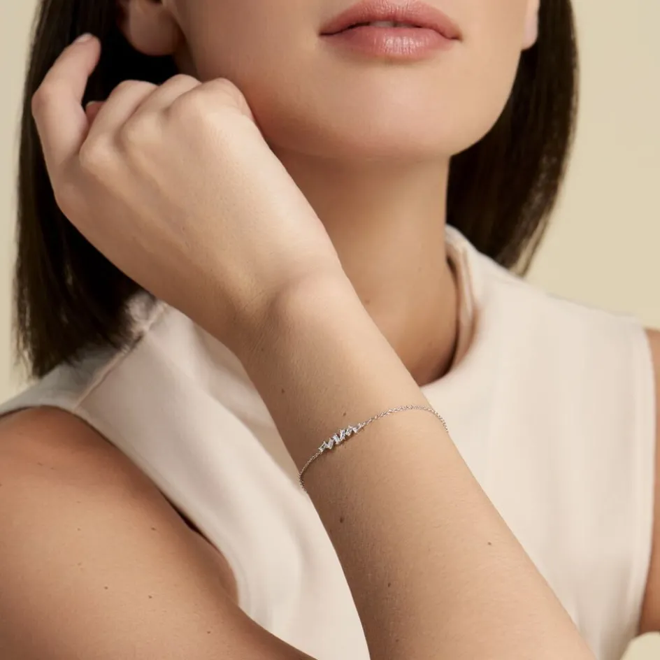 Bracelet Argent 925/1000 Oxydes De Zirconium Blancs Tailles Baguettes Désorganisés Maille Forçat 19cm
