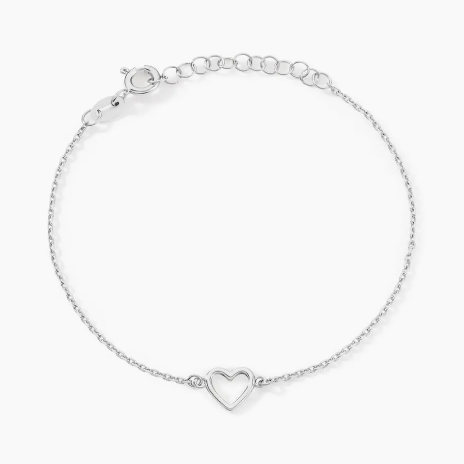 Bracelet Argent Blanc 925/1000 C艙ur Maille Forcat 18.5cm