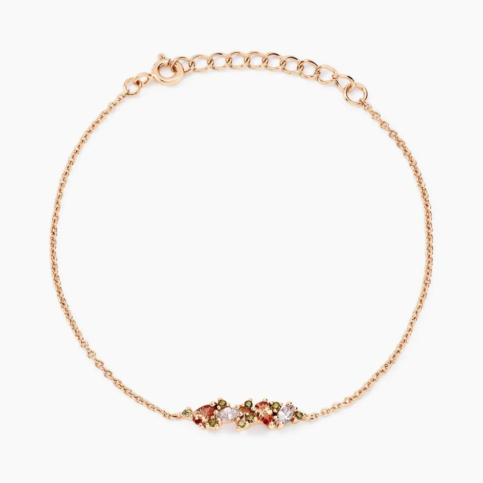 Bracelet Argent Rose 925/1000 Pavage Oxydes De Zirconium Multi Couleur Maille Jaseron 16+3cm