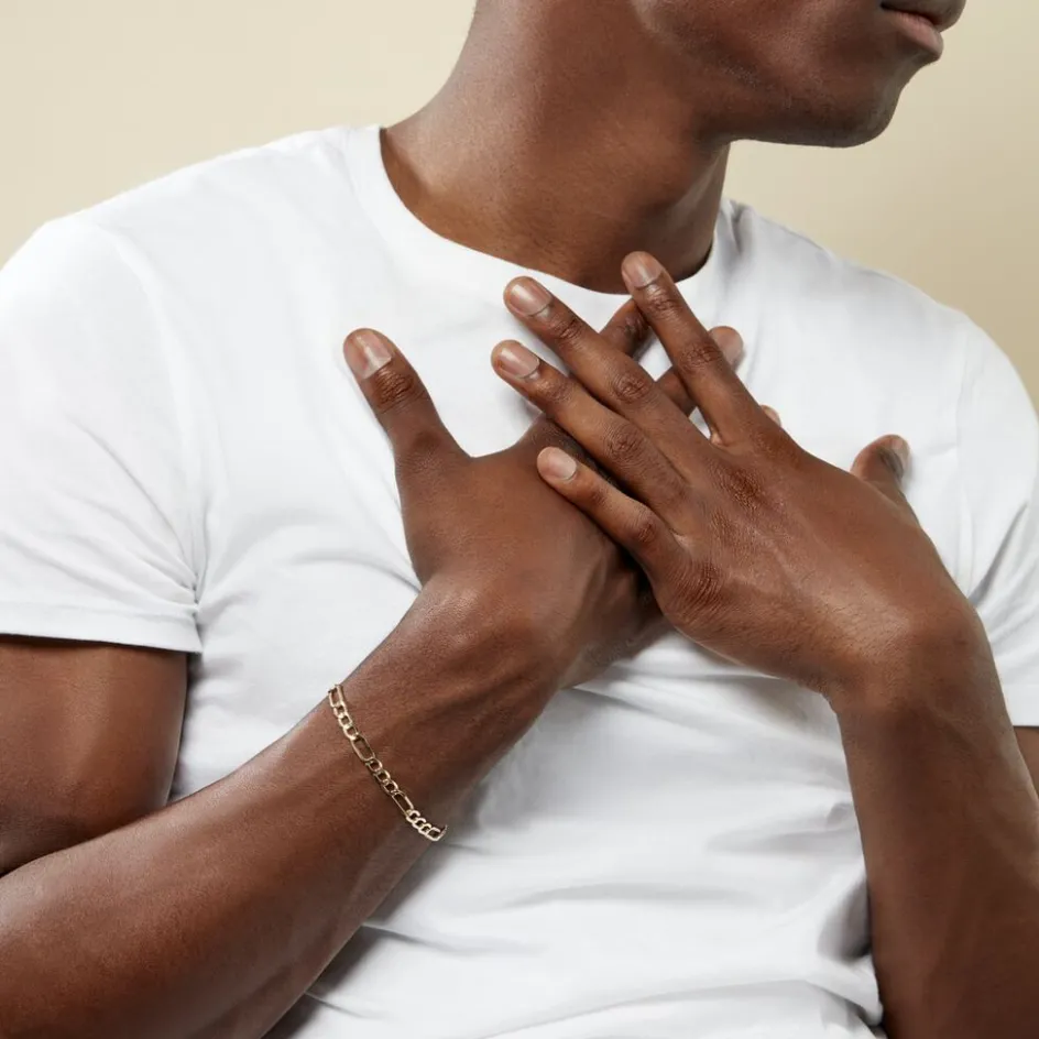 Bracelet Or Jaune 375/1000 Maille Alternee 1/3 Largeur 5.4mm 21cm