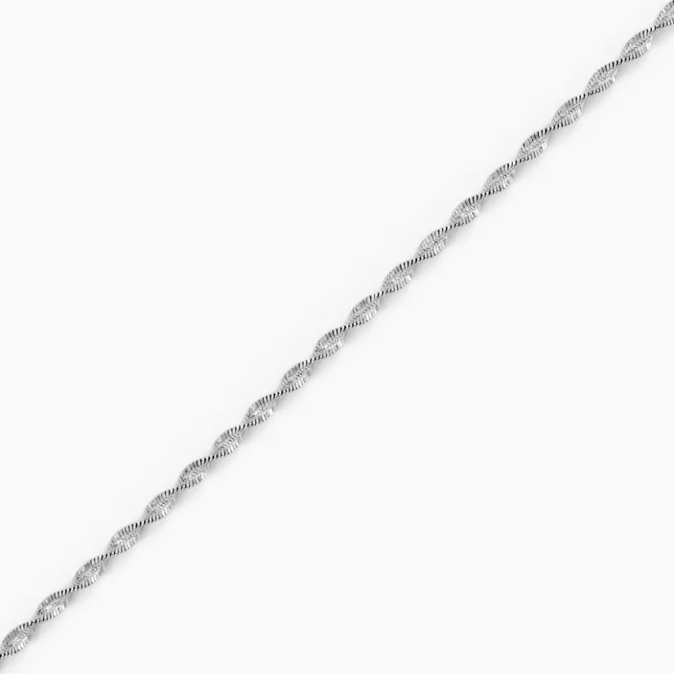 Bracelet Argent Blanc 925/1000 Maille Torsade Diamantee Largeur 2mm 18cm
