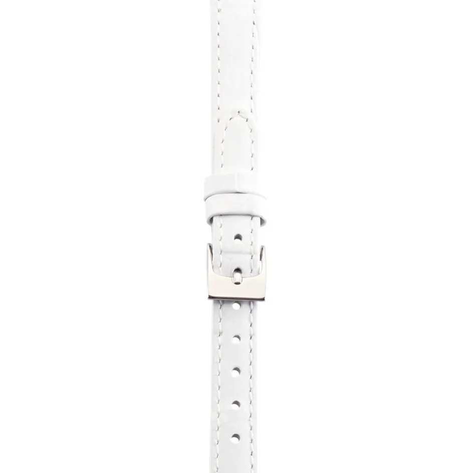 Bracelet De Montre Cuir Alligator Blanc Boucle Argentee 12mm