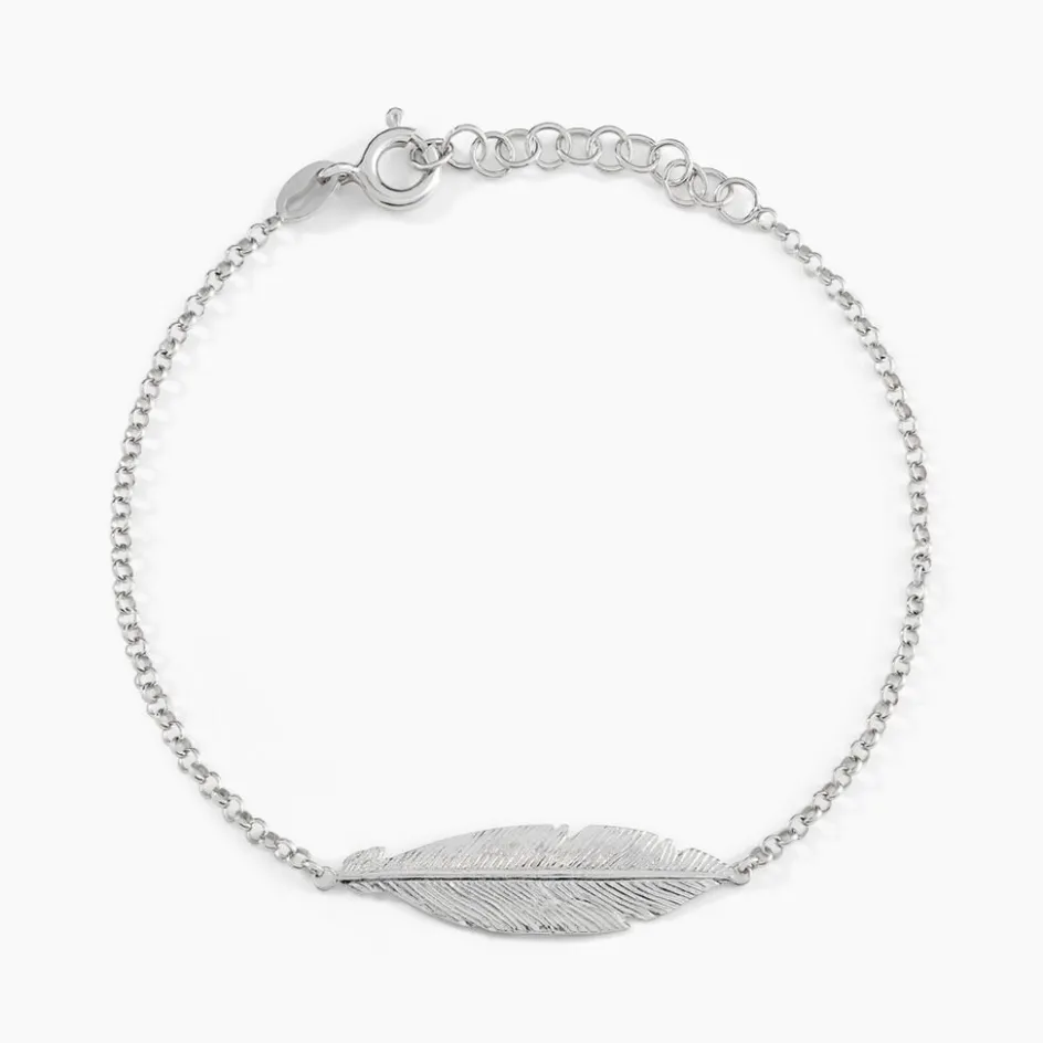 Bracelet Argent Blanc 925/1000 Plume Maille Forcat 19cm