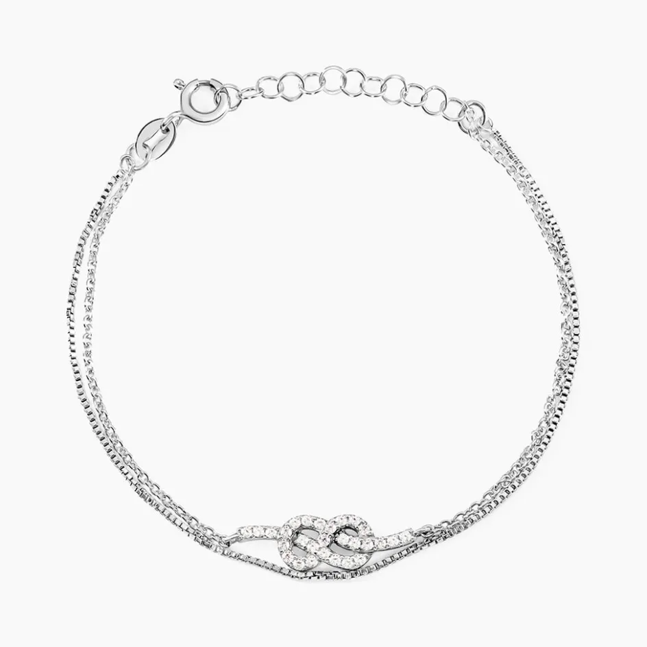 Bracelet Argent Blanc 925/1000 N艙ud Pavage Oxydes De Zirconium Double Rang Mailles Forçat Et Vénitienne 16+3cm