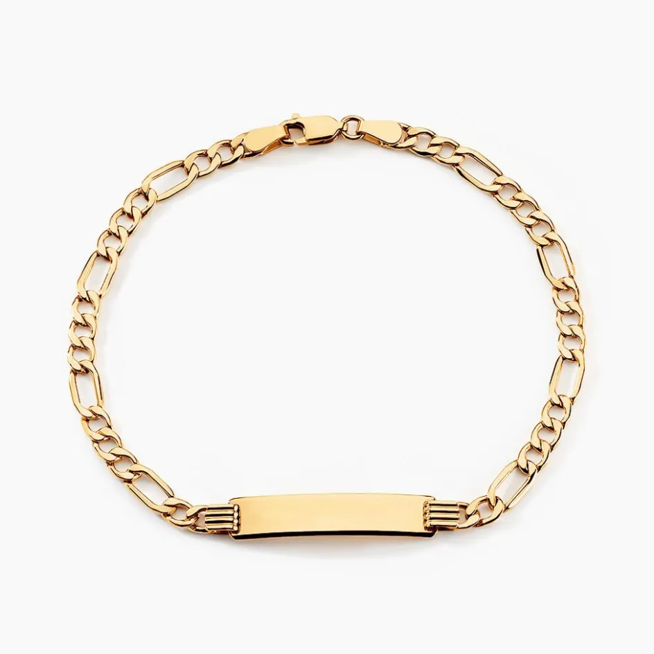 Bracelet Identite Or Jaune 375/1000 Plaque Rectangulaire Gravable Maille Alternee 1/3 Largeur 4mm 21cm