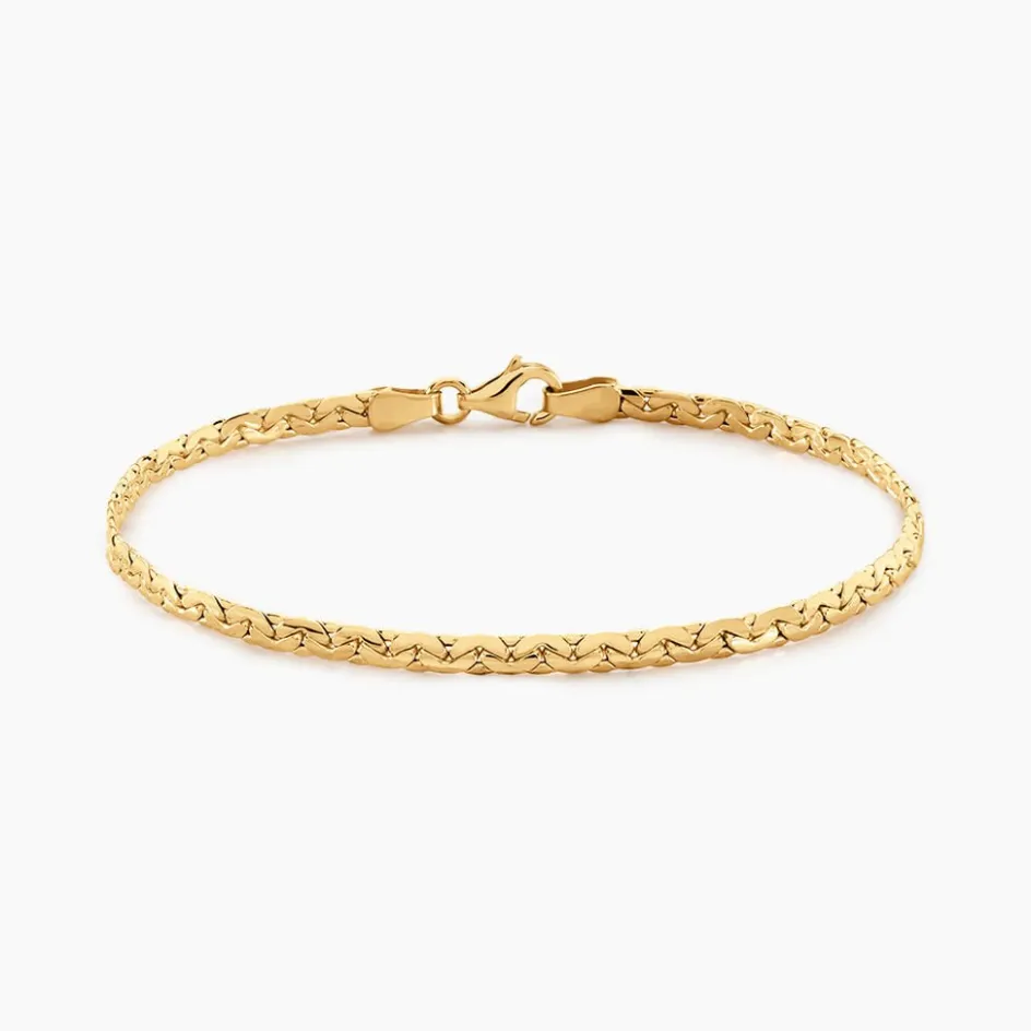 Bracelet Or Jaune 375/1000 Maille Haricot 3mm 17cm