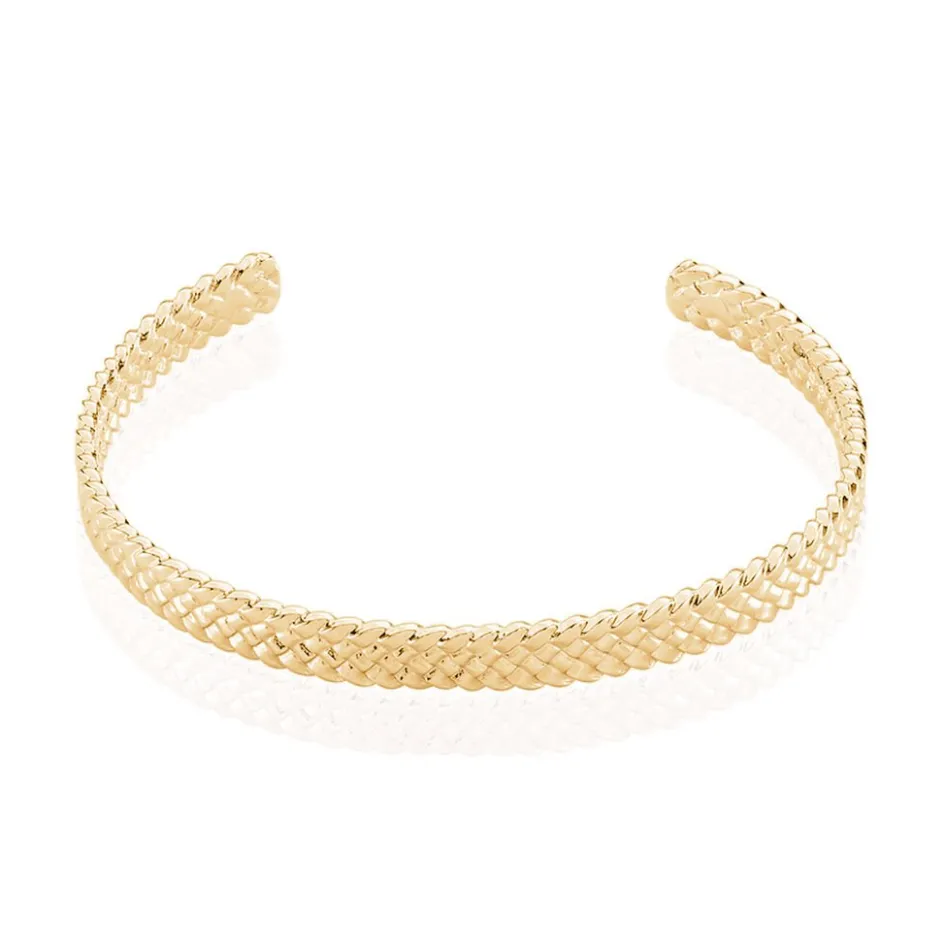 Bracelet Jonc Plaqué Or Jaune Ouvert Effet Tresse Diametre 55*45mm
