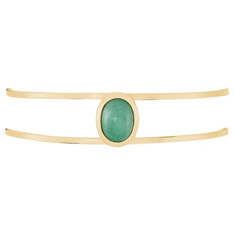 Bracelet Jonc Plaqué Or Jaune Ouvert Avec Aventurine Ovale Verte Serti Clos Diametre 58mm
