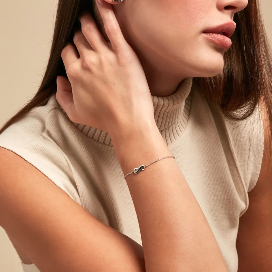 Bracelet Argent 925/1000 liraz Forme Infini Pavage Oxydes De Zirconium Bicolore Maille Forcat 16+3cm