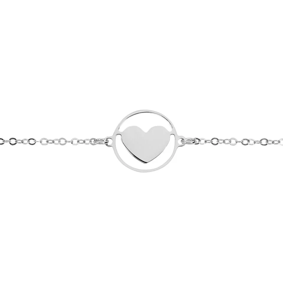 Bracelet Argent Blanc 925/1000 Cercle Coeur Maille Forcat 19cm