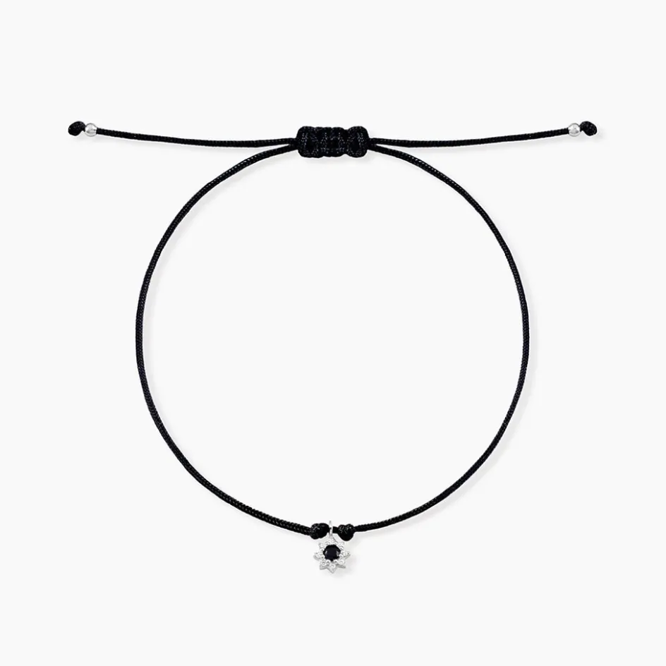 Bracelet Argent Blanc 925/1000 Soleil Oxyde De Zirconium Noir Central Entourage Oxydes De Zirconium Cordon Noir 23.5cm