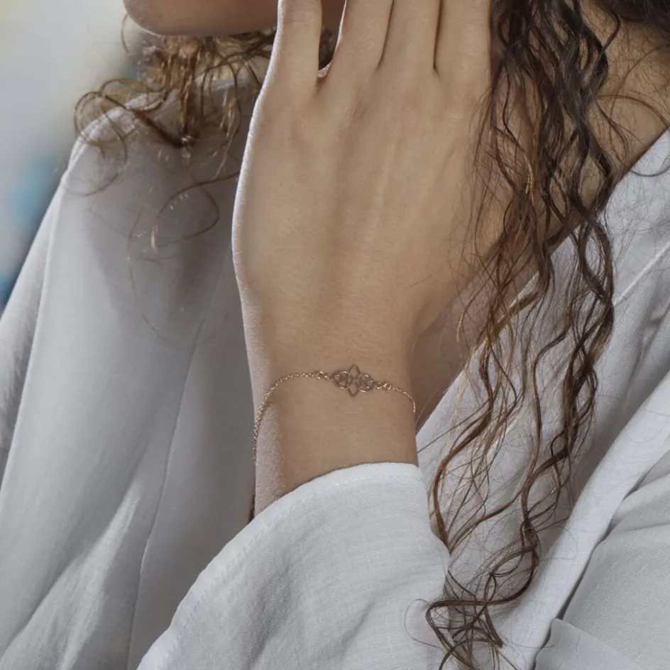 Bracelet Argent Rose 925/1000 Arabesques Ajourees Maille Forcat 18cm