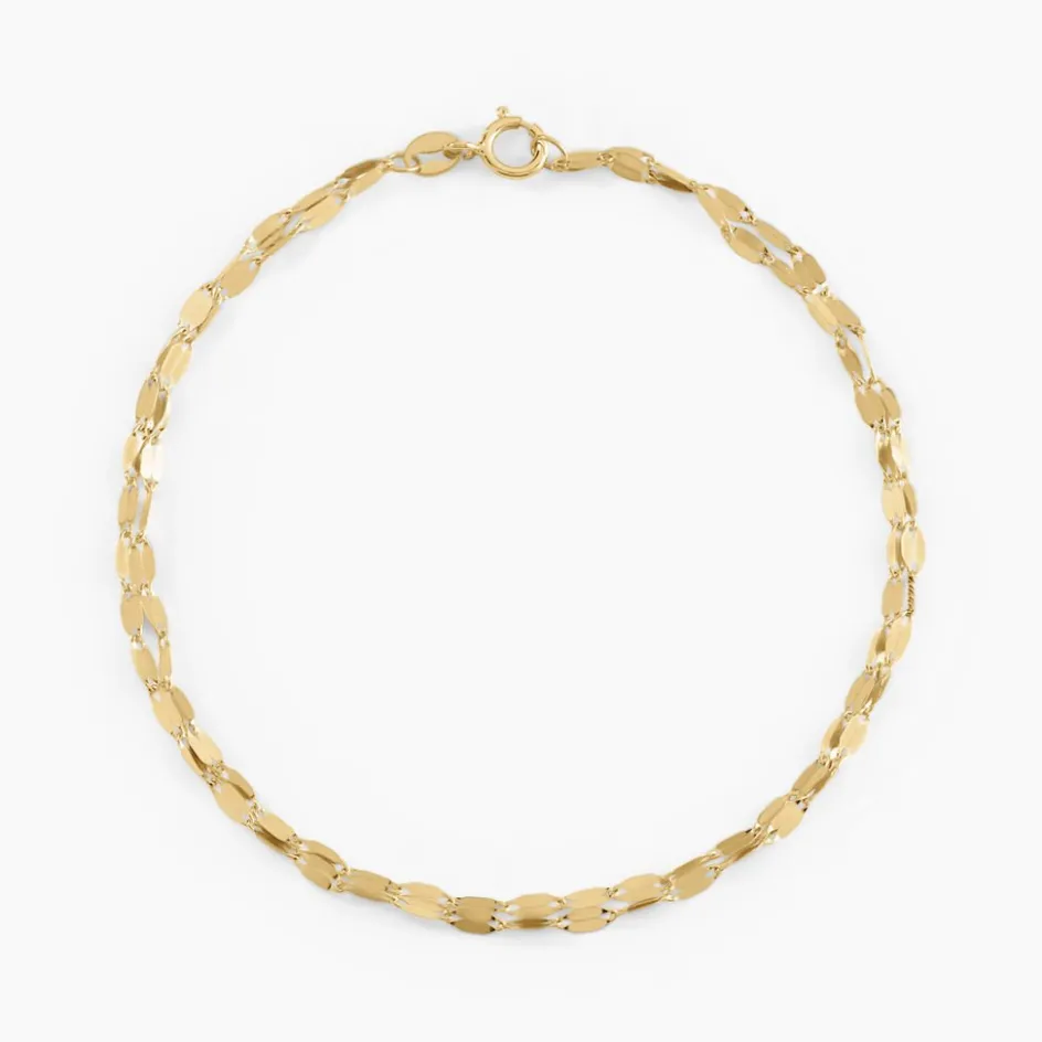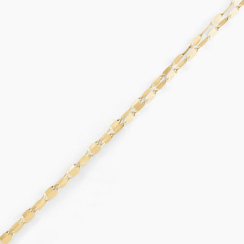 Bracelet Or Jaune 375/1000 Double Chaines Largeur 3mm Maille Lumina 18cm