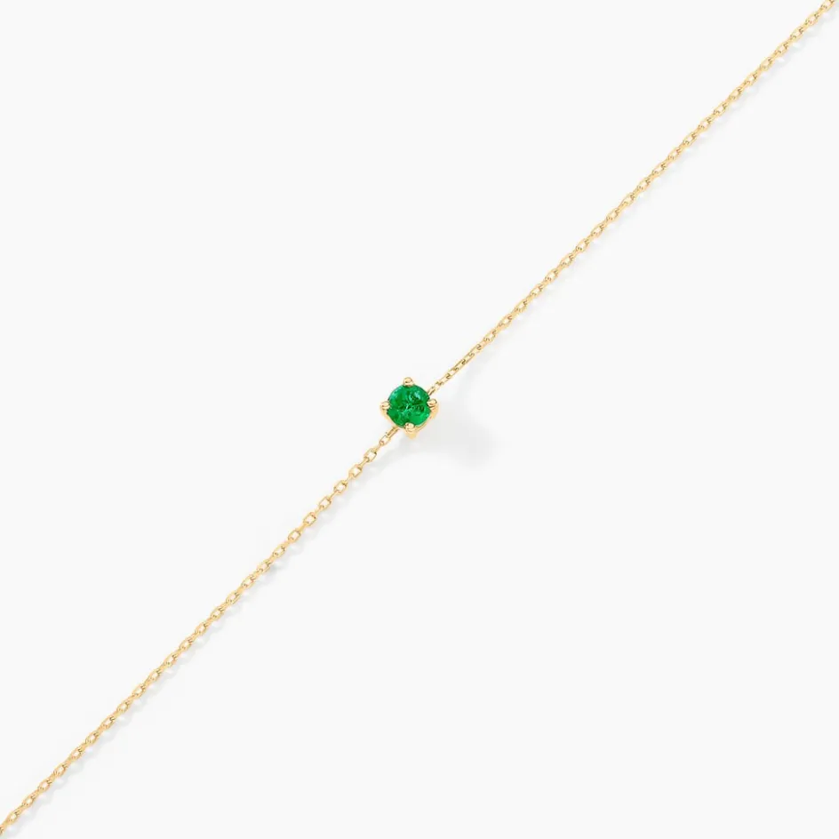 Bracelet Solitaire Or Jaune 375/1000 Emeraude Serti Griffes 0.1ct Maille Forçat 18cm