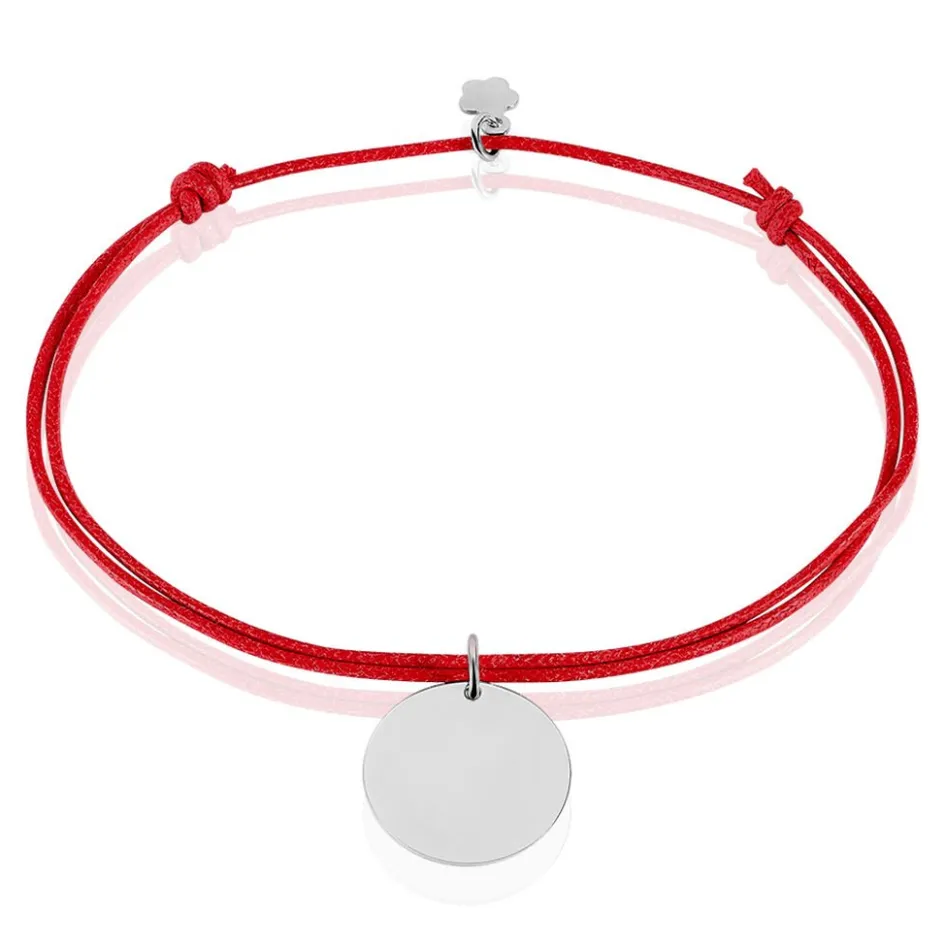 Bracelet Argent Blanc 925/1000 Pastille Cordon Rouge Ajustable