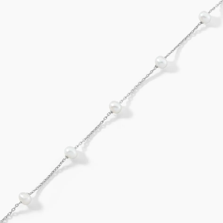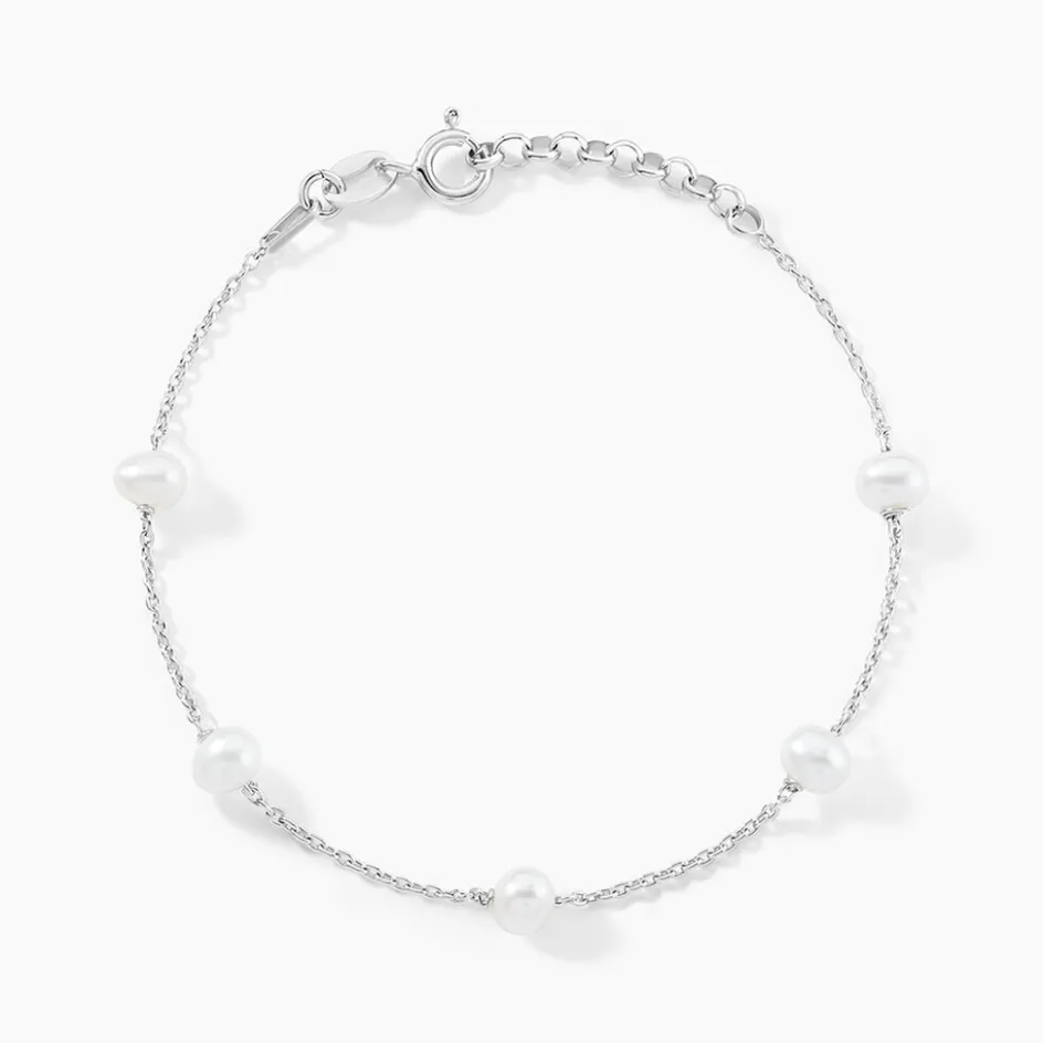 Bracelet Argent Blanc 925/1000 Perles De Culture 19cm