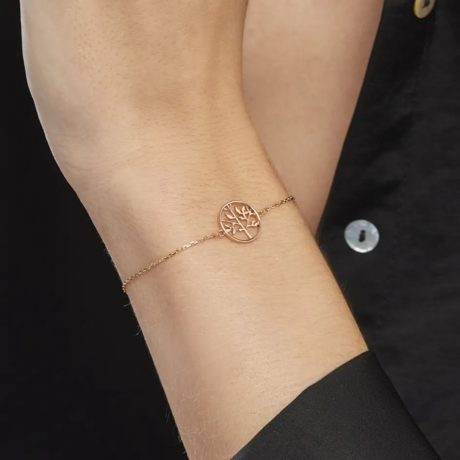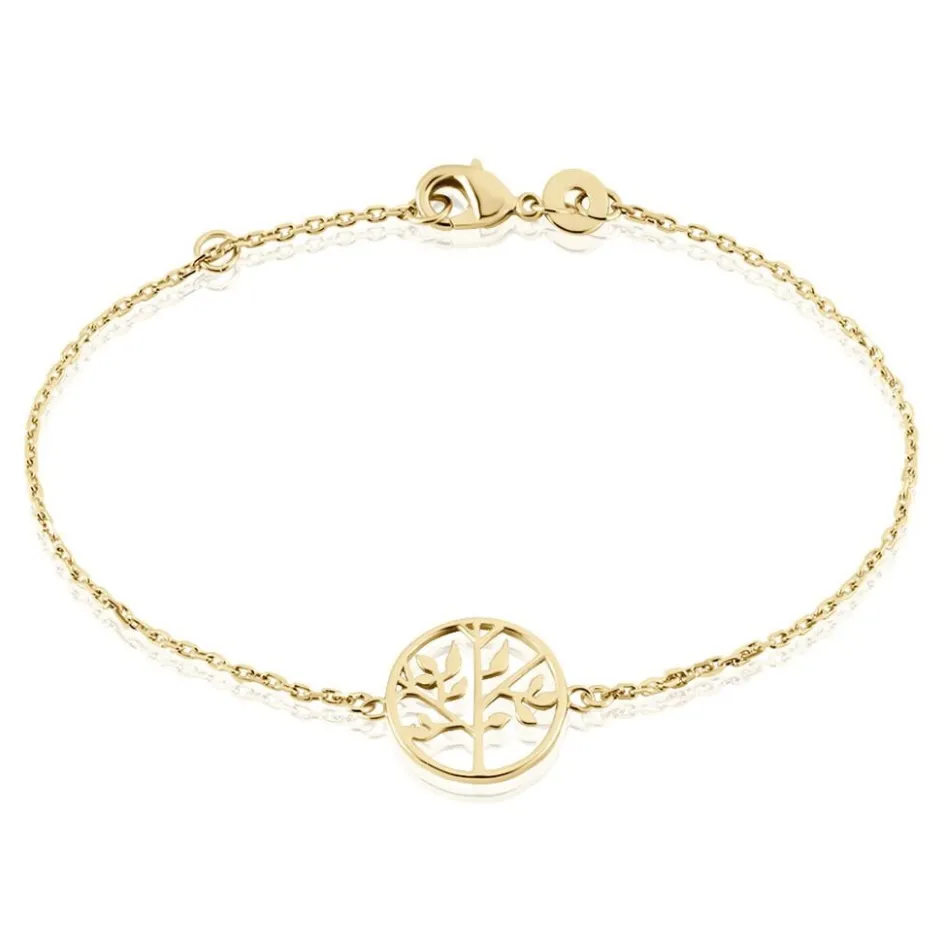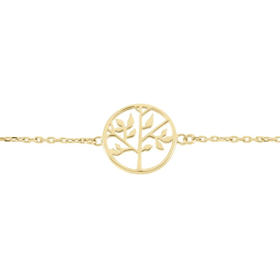 Bracelet Plaque Or Jaune Arbre De Vie Chaine Forcat 18cm