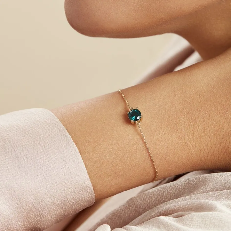 Bracelet Plaqué Or Jaune Oxyde De Zirconium Bleu 6mm 4 Griffes Maille Forçat 19cm