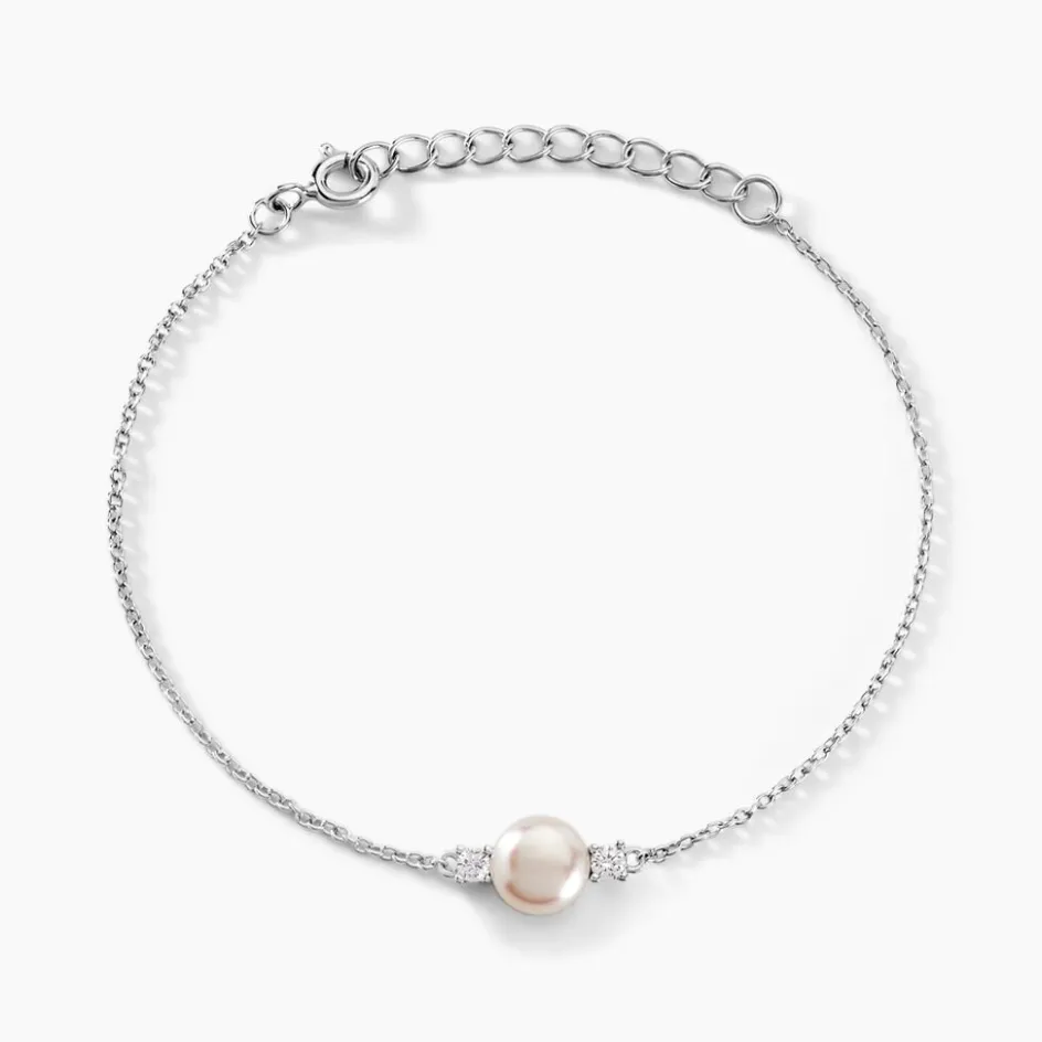 Bracelet Argent Blanc 925/1000 Perle De Culture 7-7.5mm Et Oxydes De Zirconium 18.5cm