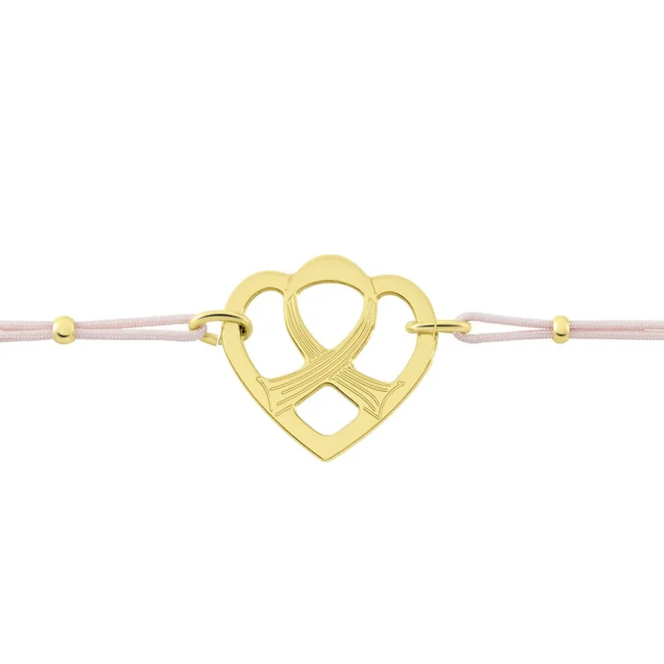 Bracelet Solidaire Lutte Contre Le Cancer Laiton Doré Motif C艙ur Cordon Rose 21cm