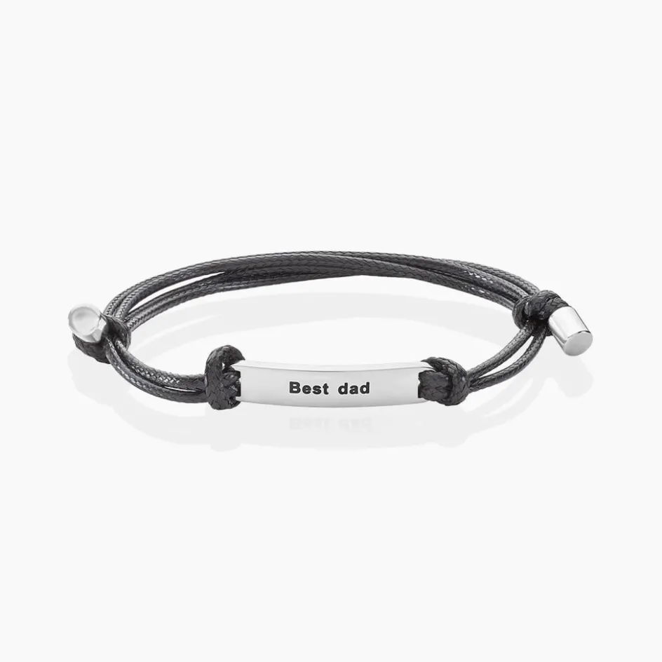 Bracelet Acier Inoxydable Blanc Plaque Rectangle Message Best Dad Sur Cordon Ajustable Coton Noir 16.5-26cm