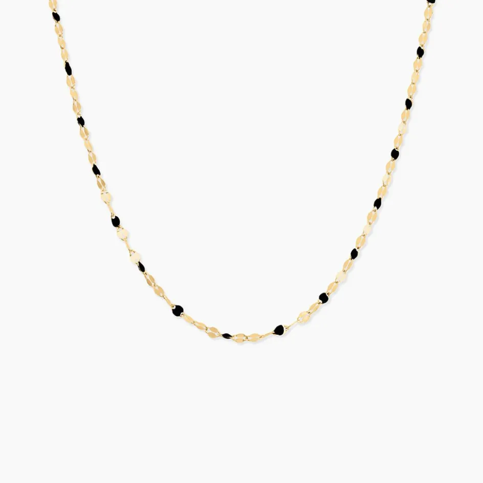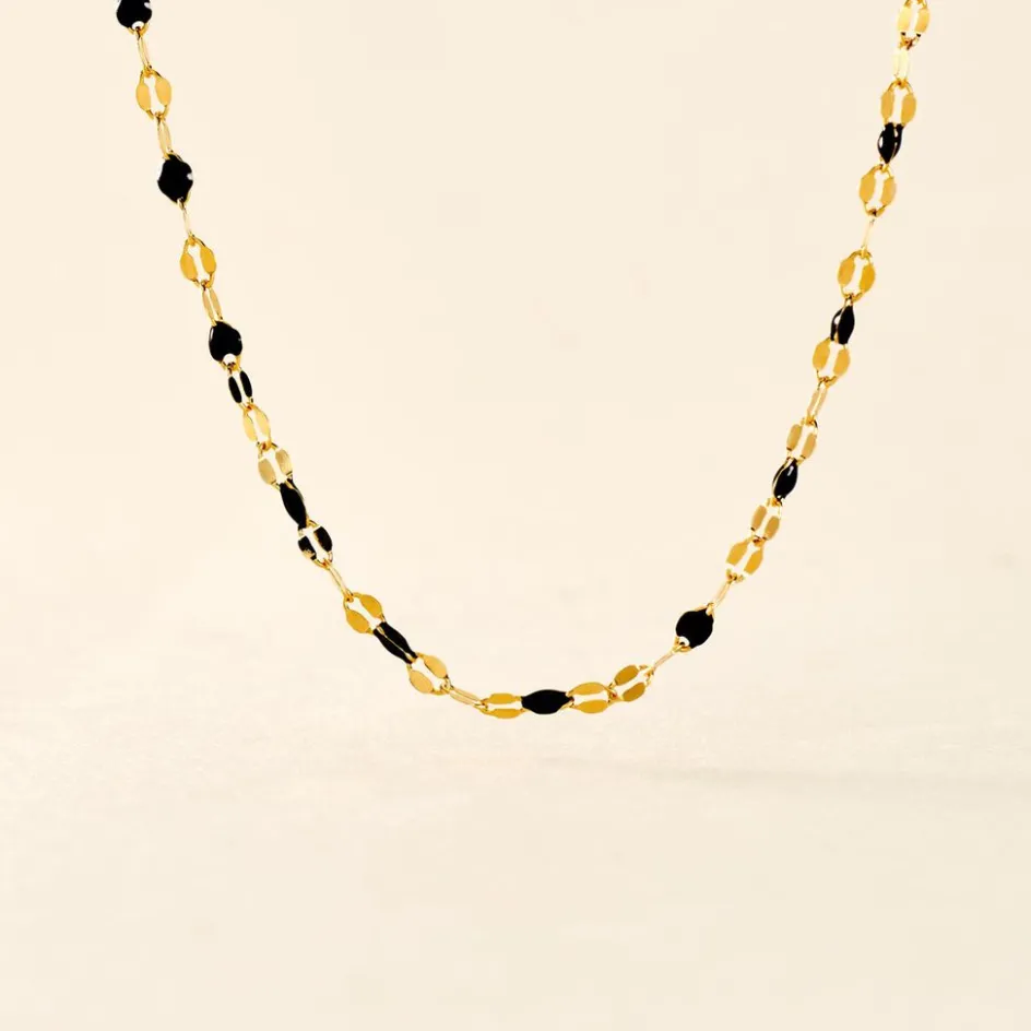 Collier Or Jaune 375/1000 Email Noir Maille Lumina 40+2cm