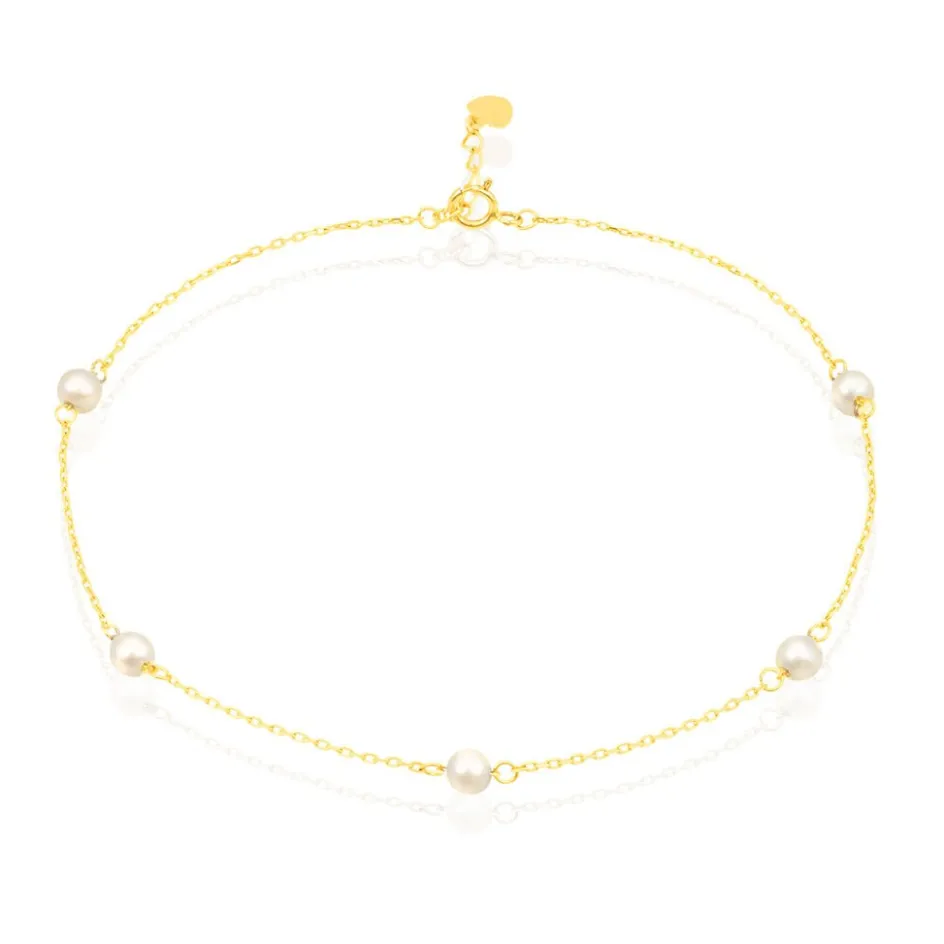 Chaine De Cheville Or Jaune 375/1000 5 Perles De Culture Maille Forcat 24cm
