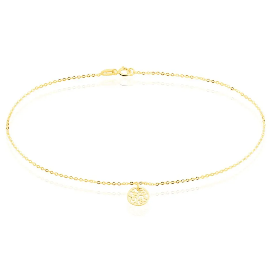 Chaine De Cheville Or Jaune 375/1000 Arbre De Vie Maille Jaseron 24cm
