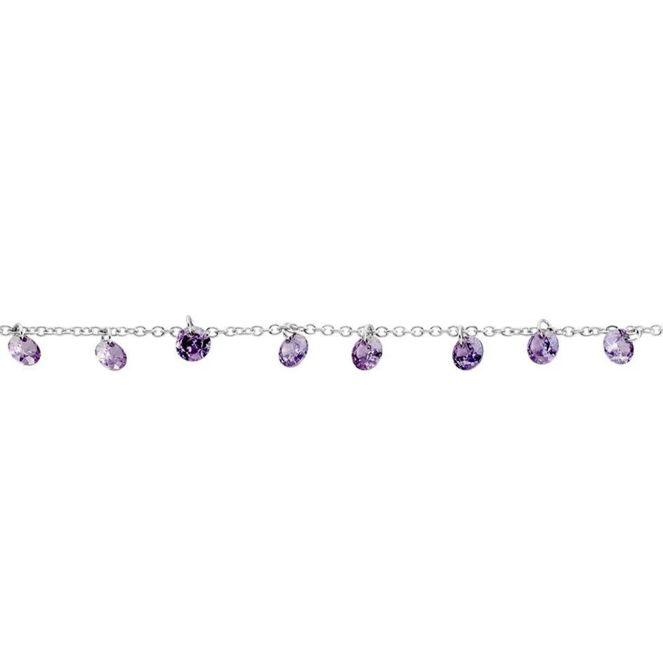 Chaîne De Cheville Argent Blanc 925/1000 Pampilles Oxydes De Zirconium Violets Maille Forçat 25cm