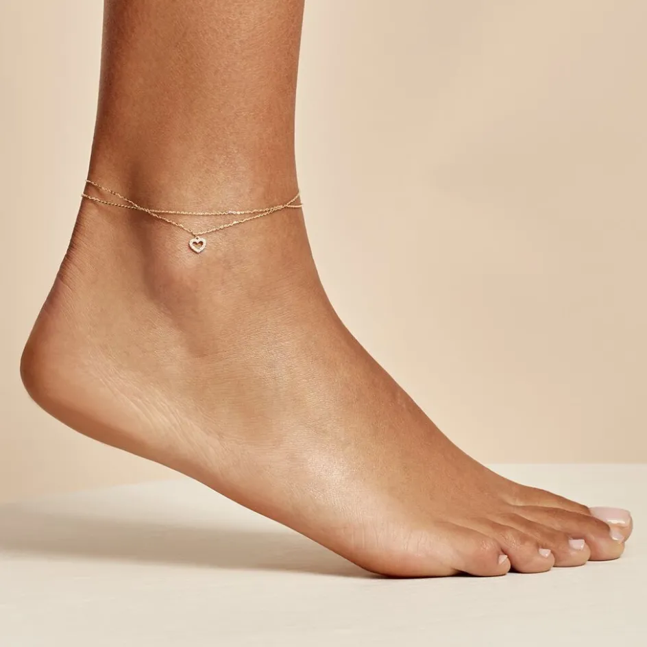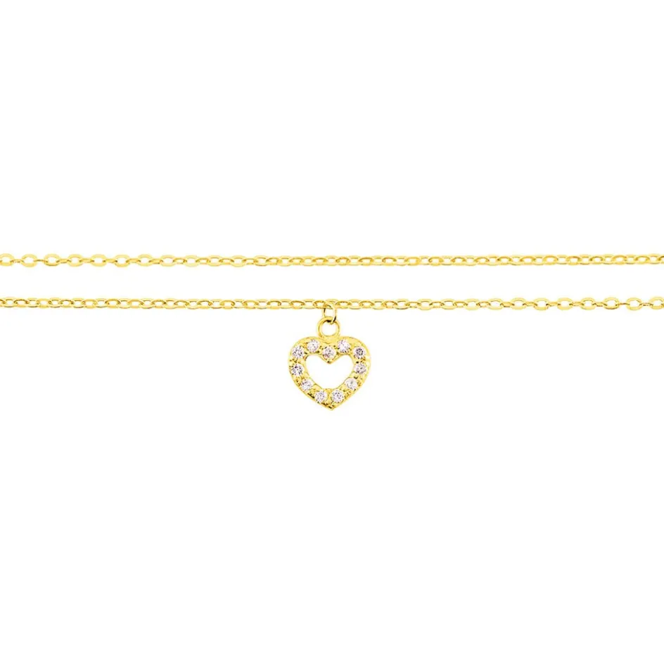 Chaine De Cheville Or Jaune 375/1000 Motif Coeur Double Maille Jaseron 24cm