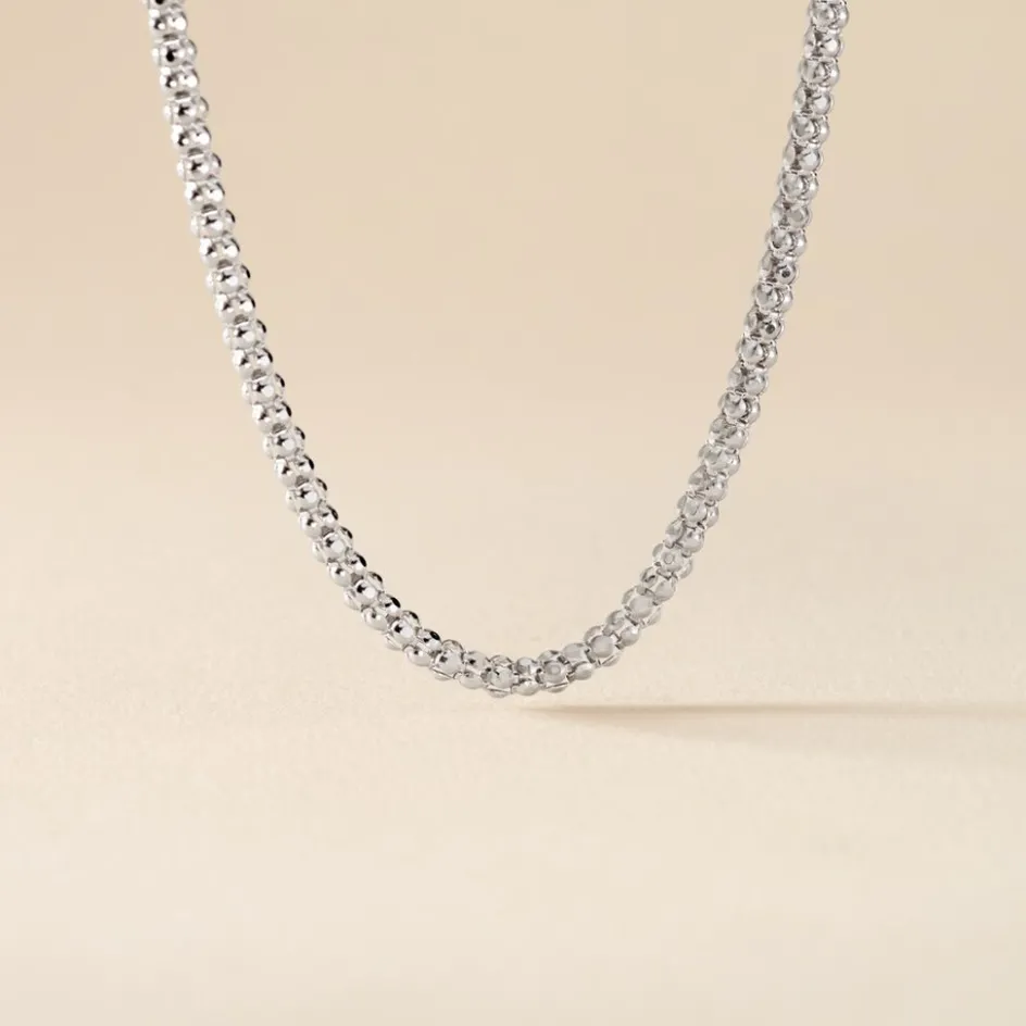 Collier Argent Blanc 925/1000 Maille Popcorn Largeur 3mm 45cm