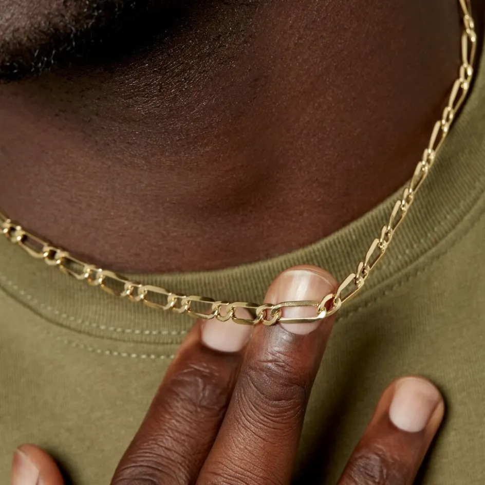 Collier Or Jaune 375/1000 Maille Alternee 1/1 Largeur 5.4mm 50cm