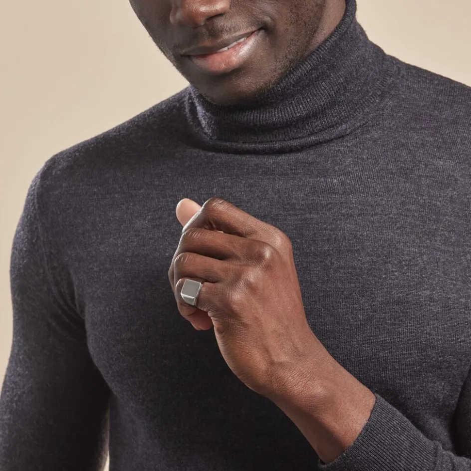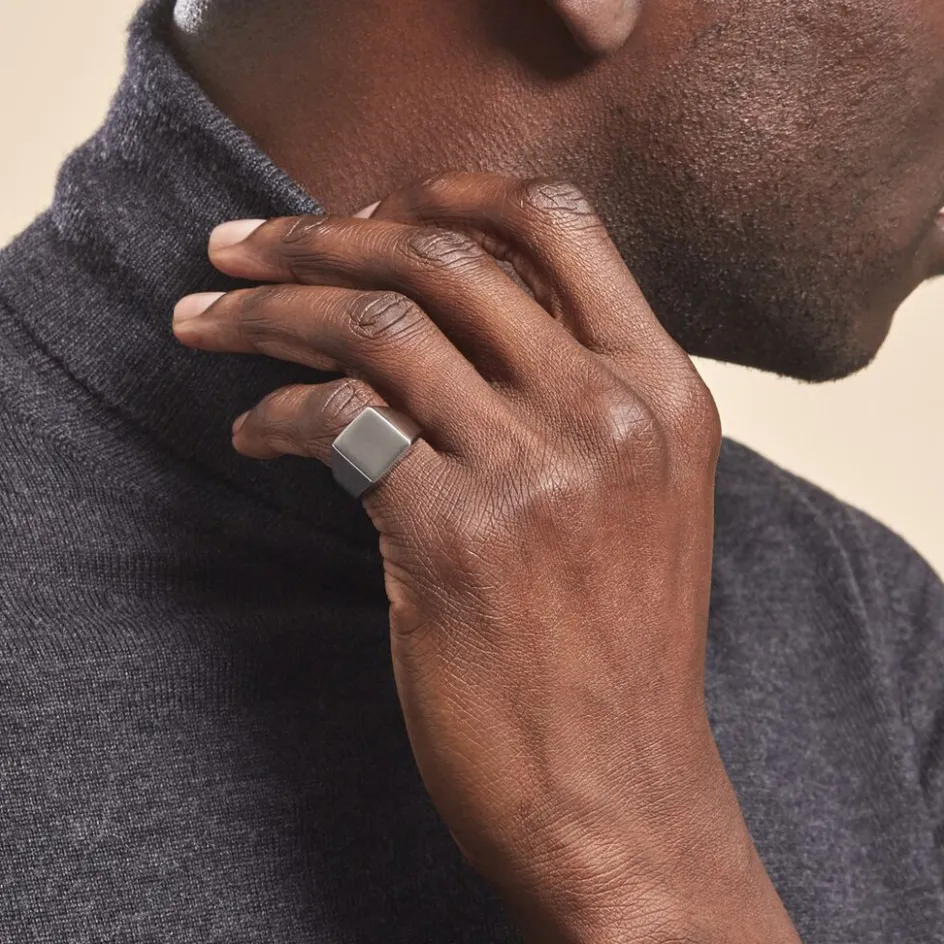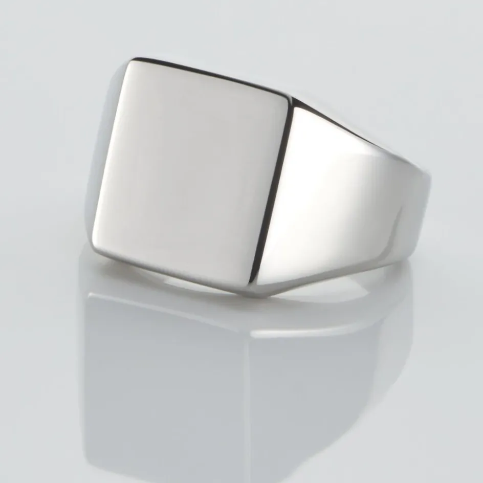 Chevaliere Acier Inoxydable Blanc Plateau Carre Lisse