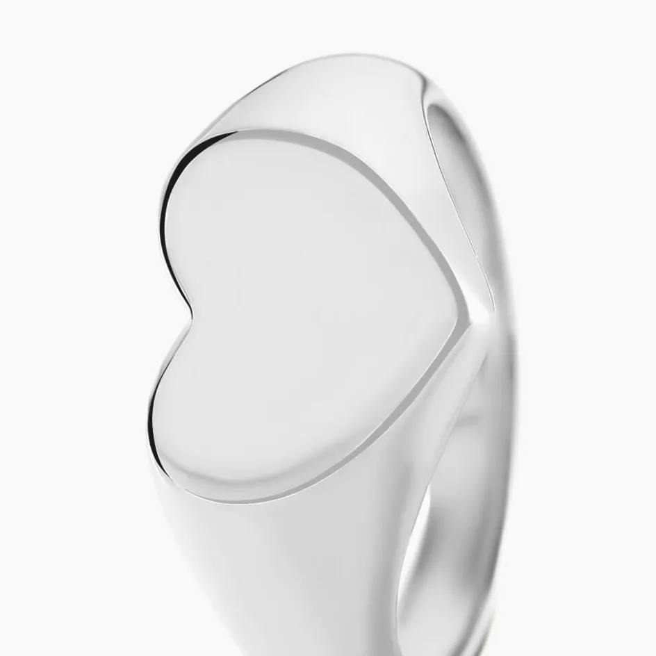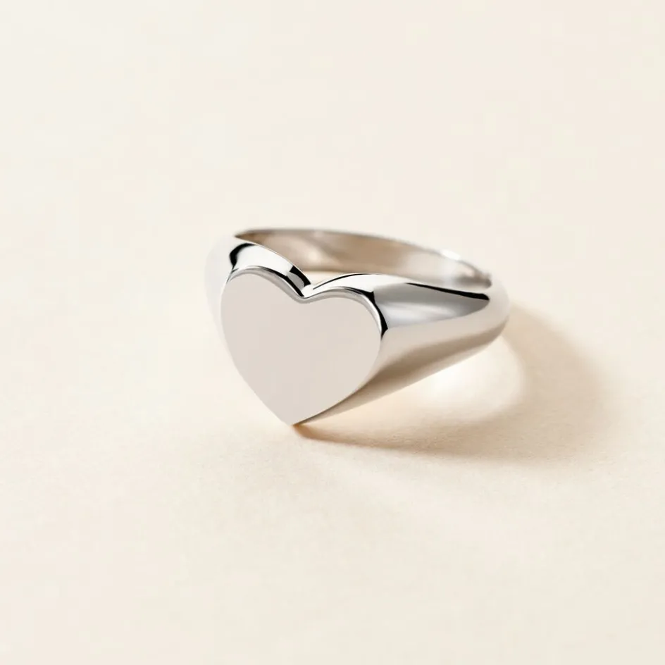 Chevalière Argent Blanc 925/1000 Plateau Forme C艙ur