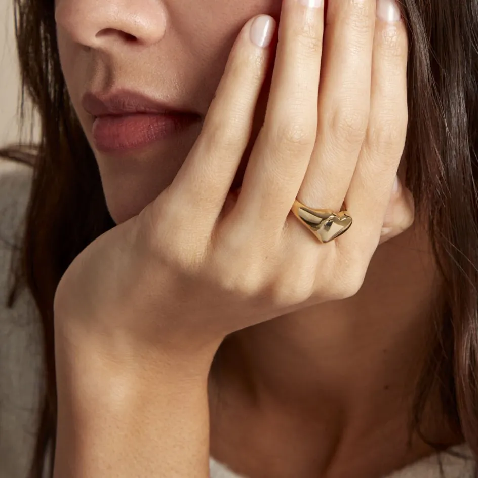Chevalière Acier Inoxydable Jaune Plateau C艙ur