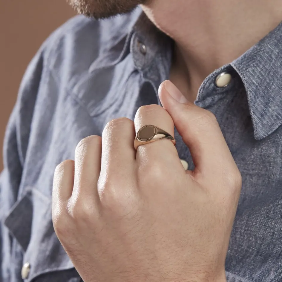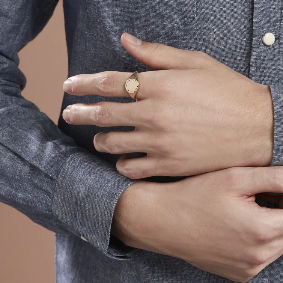 Chevalière Plaqué Or Jaune Ronde Gravure Points