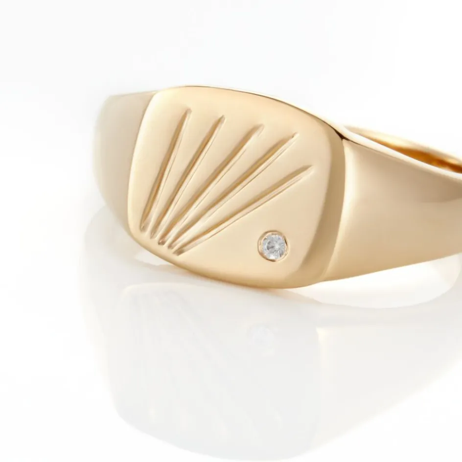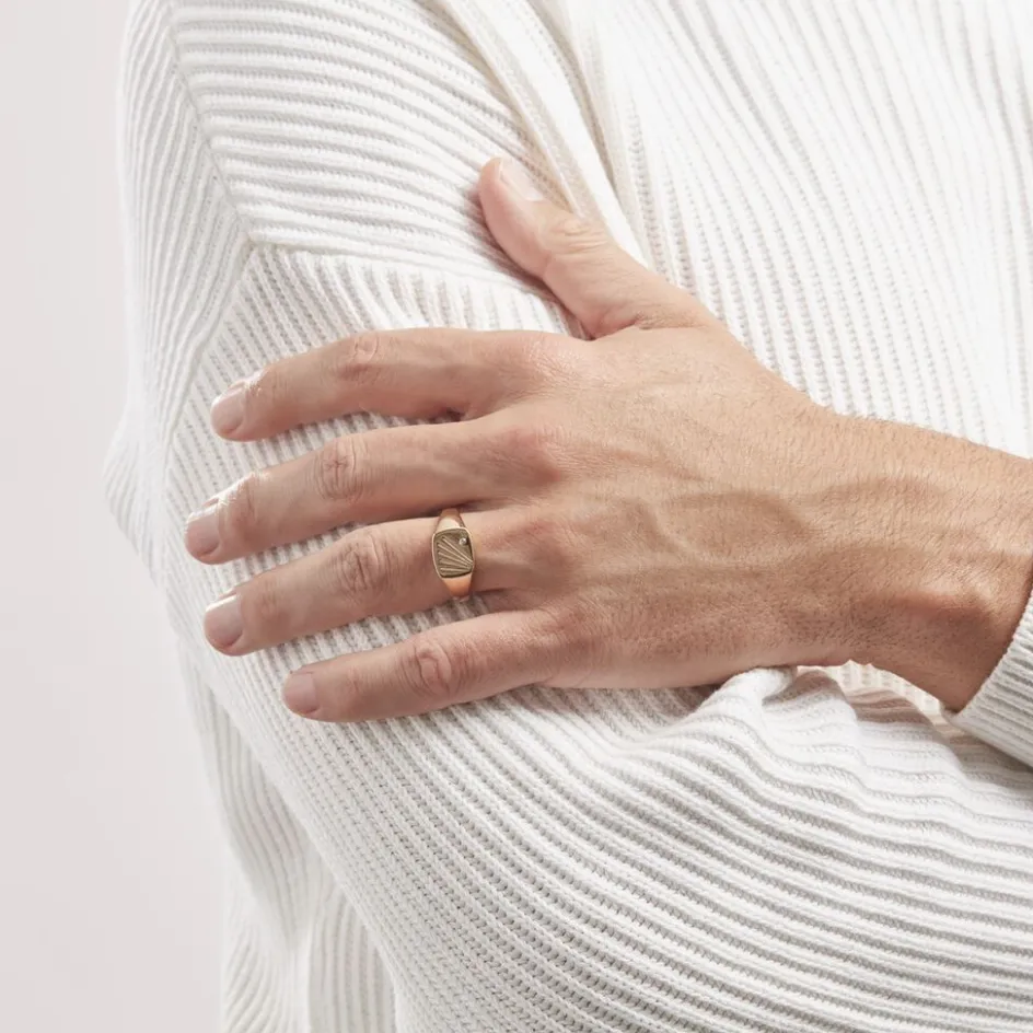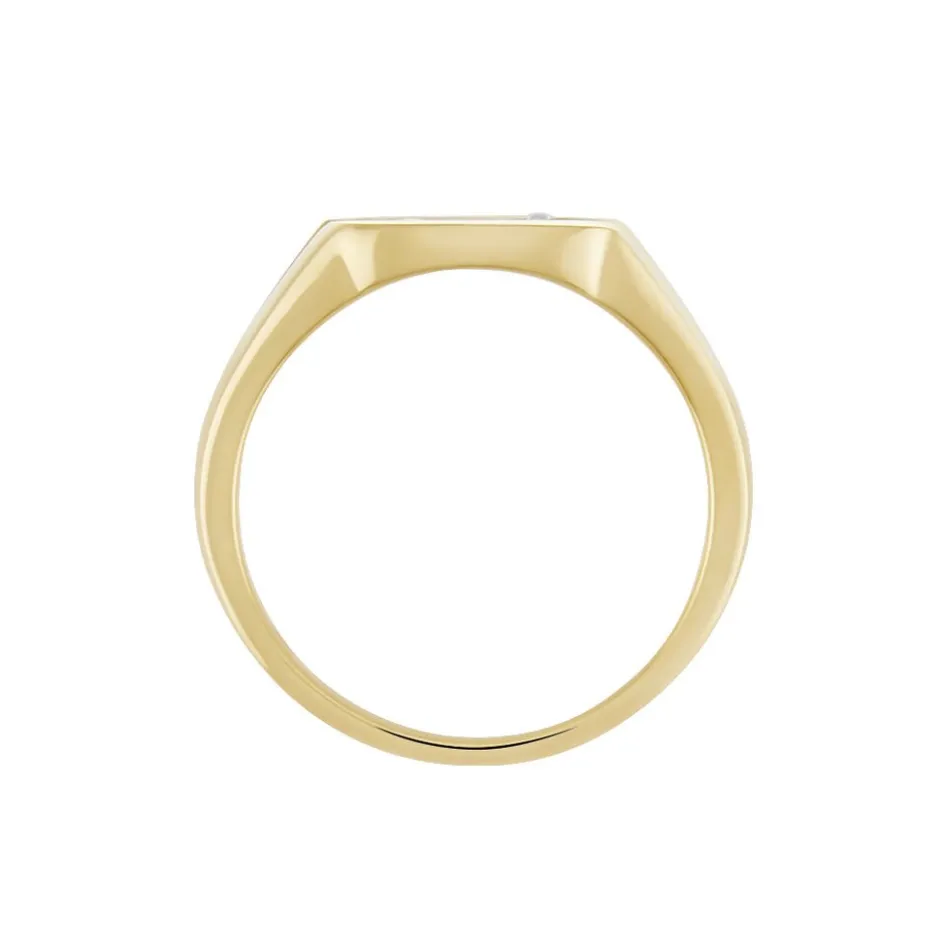 Chevaliere Plaque Or Jaune Plateau Rectangle Effet Strie Oxyde De Zirconium