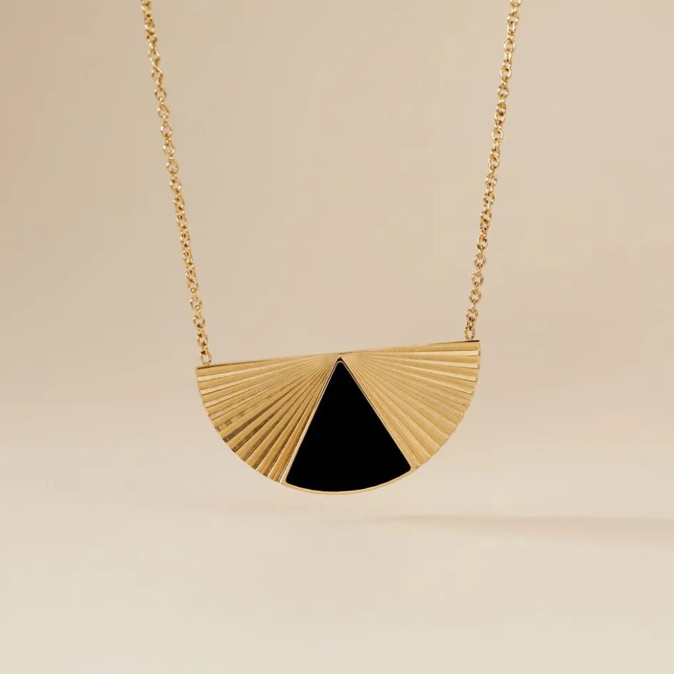 Collier Acier Dore Demi Soleil Laque Noire Maille Forcat 60cm