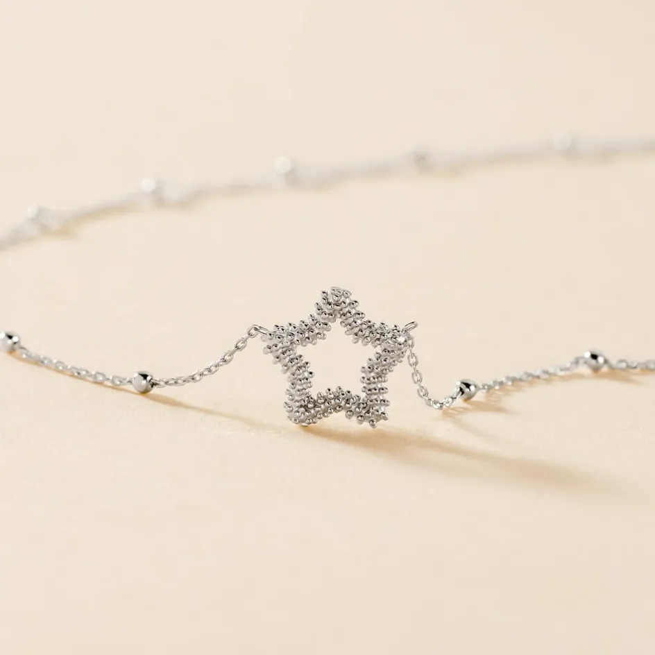 Collier Argent Blanc 925/1000 étoile Effet Perlé Maille Forçat 42+3cm