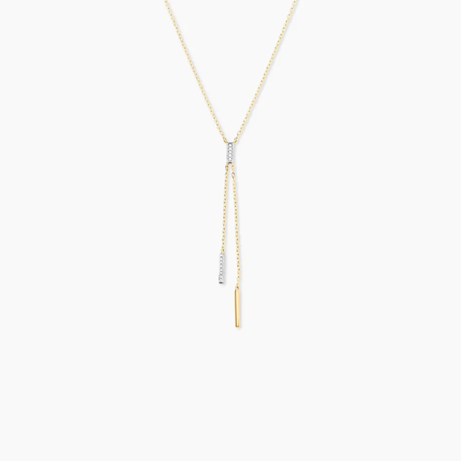 Collier Or Jaune 375/1000 Cravate Diamant Micro Serti Maille Forcat 40+2Cm