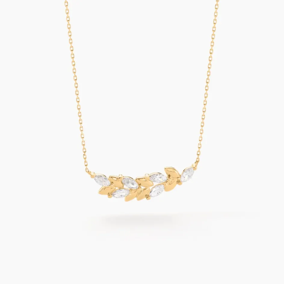 Collier Or Jaune 375/1000 Forme Epi De Blé Oxydes De Zirconium 42cm