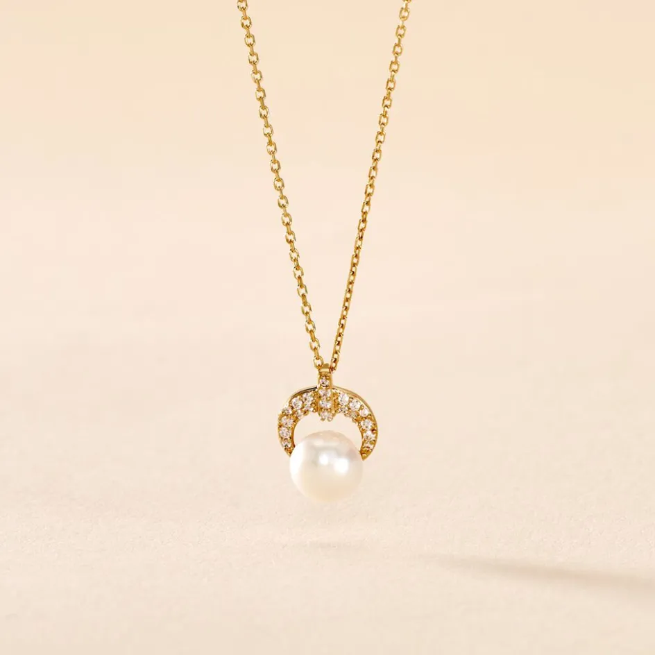 Collier Or Jaune 375/1000 Perle De Culture 6mm Demi Cercle Oxydes De Zirconium 43cm