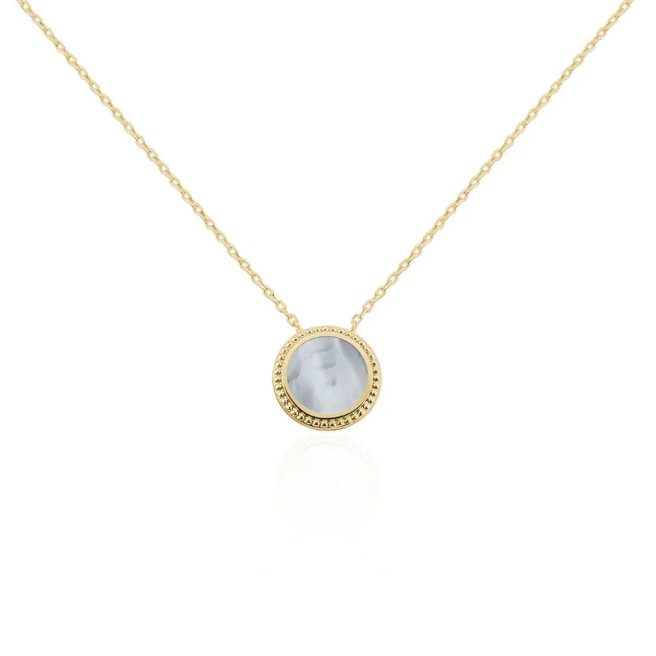 Collier Plaqué Or Jaune Nacre Ronde Entourage Perle 45cm