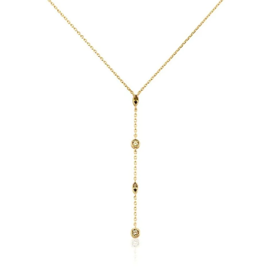Collier Plaque Or Jaune Forme Cravate Oxydes De Zirconium Verts Navettes Et Ronds Serti Clos 45cm