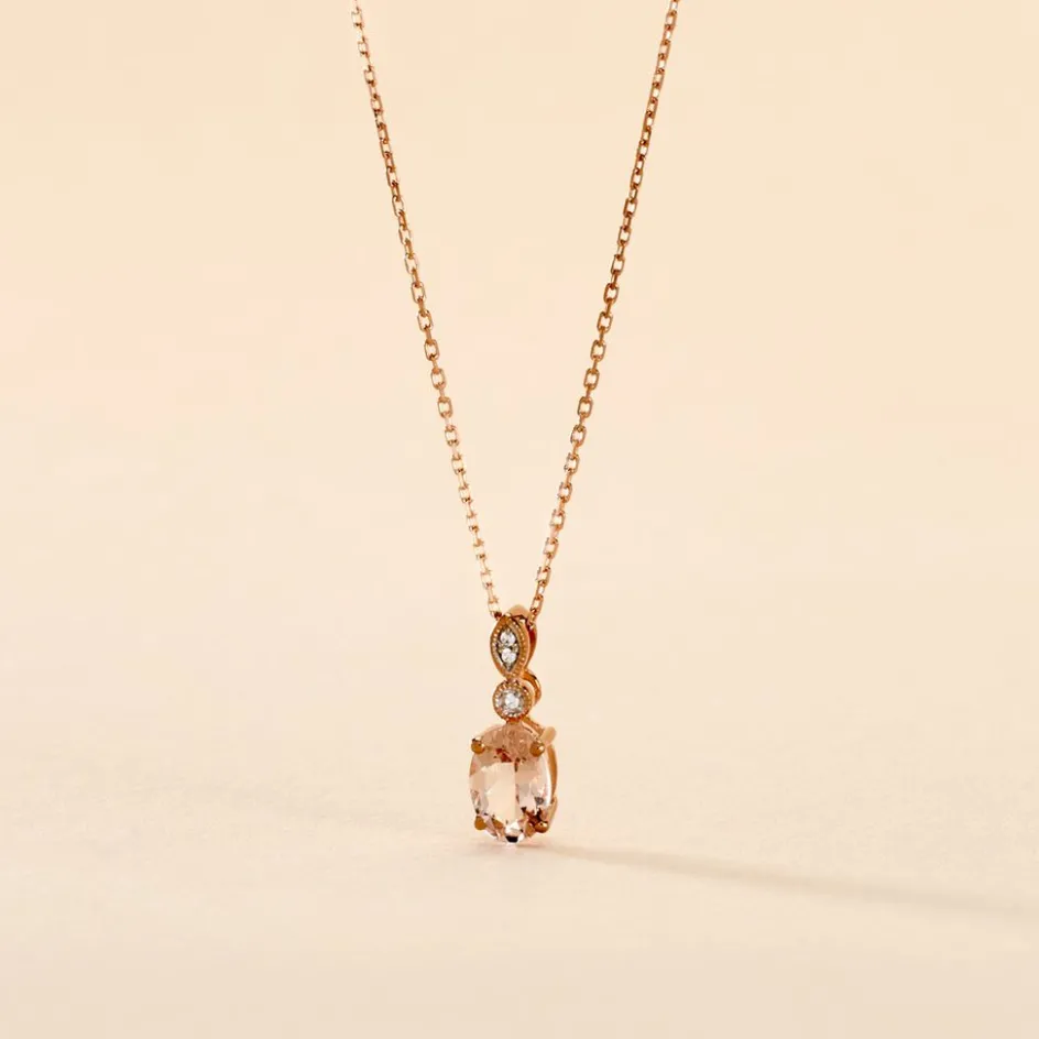 Collier Or Rose 375/1000 Morganite Avec Oxydes De Zirconium 42cm