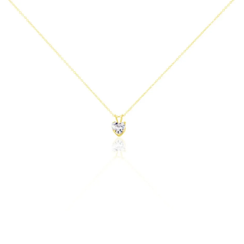Collier Or Jaune 375/1000 Chaine Forçat C艙ur Serti 4 Griffes Oxyde De Zirconium 40+2cm