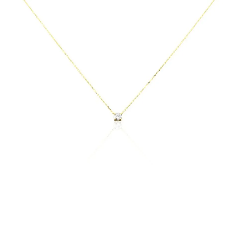 Collier Or Jaune 750/1000 Solitaire Diamant Synthetique 0.30cts 45cm