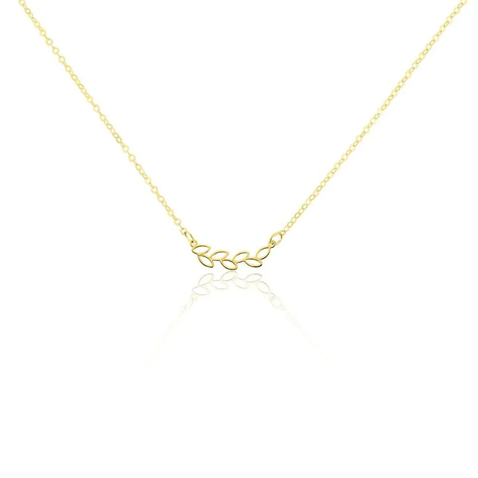 Collier Or Jaune 375/1000 Feuille Maille Forcat Ronde 40+2cm